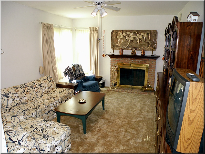 Features fireplace in the den and a sunny patio with sliding